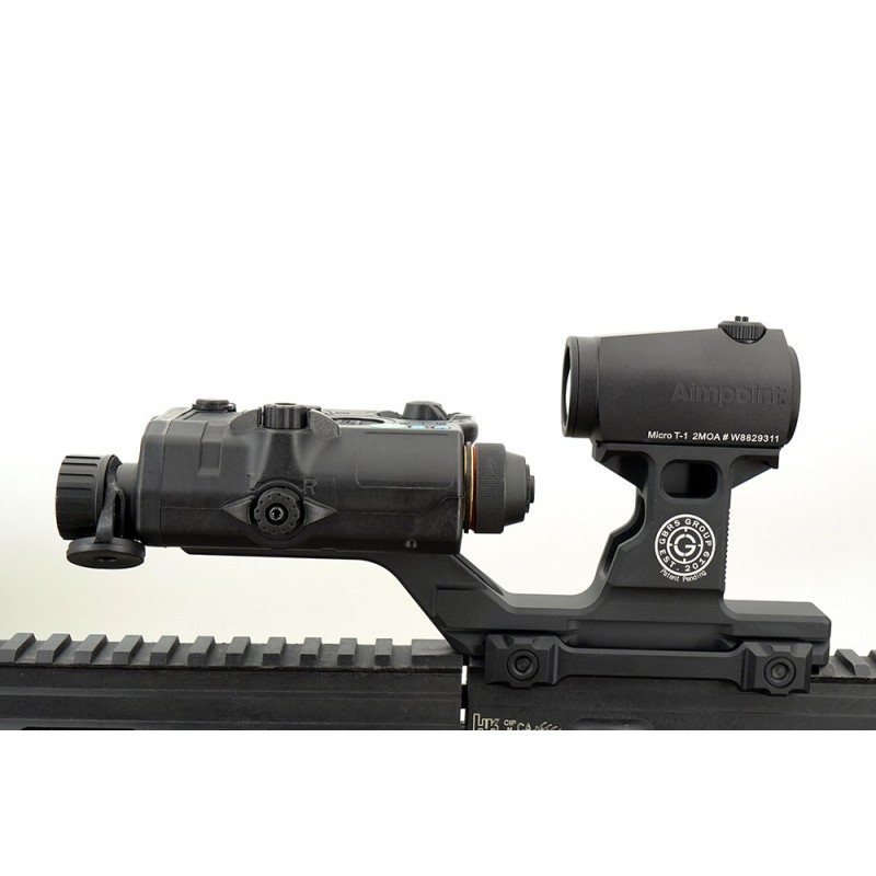 The unique and patented design offers an elevated MIL-STD-1913, or Picatinny, platform for direct attachment of accessories such as lights, optics and aiming devices. It’s perfect for the super short PDW/SMG platforms where rail space is limited but the need of mounting a light and laser is still critical. The pass-through on the neck allows for cable management or iron sight passthrough.