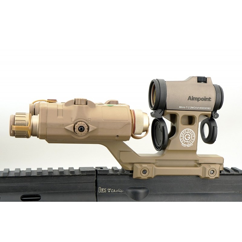 HYDRA is the first dual optic mount designed for end-users that offers a 2.91” Optic Centerline for faster target ID, regardless of gear/ equipment obstructions, ie. EarPro/Comms headsets, Gas masks/ CBRN, and Night vision use. A higher Optic allows for a more athletic posture and “Heads up” attitude that allows the end-users to maintain a vertical spine which translates to body armor or “presenting plates” to the threat. This “Heads up” style allows for faster processing speed and increased situational awareness.