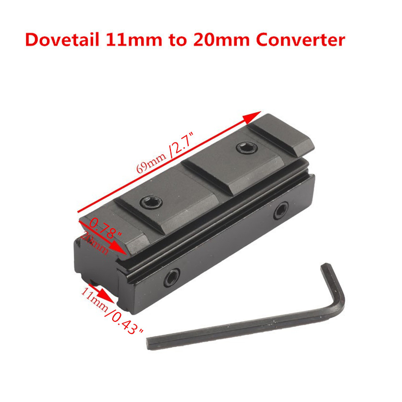 Specifications:Full metal construction.Specially designed to convert 11mm rail base to 20mm rail base.Also raising up th